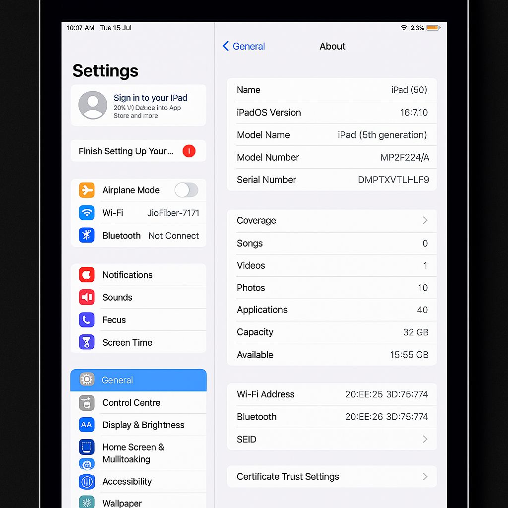 Ipad 5 Gen 9.7" Wifi (2017) 32GB storage Silver Color (A1822)