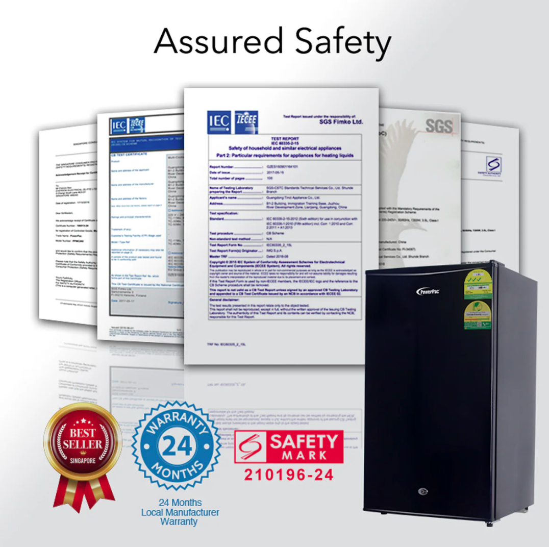 Our series of Contemporary style PowerPac refrigerators showcases the sleek and cool beauty of stainless steel. 1-door refrigerators comprising a Freezer and Fridge combo are available in 2 sizes, PPF105 (105L) and PPBF555 (50L) in silver or black. Whichever model you choose, with its clean and minimalist exterior, your refrigerator will complement the modern aesthetics of your contemporary kitchen.