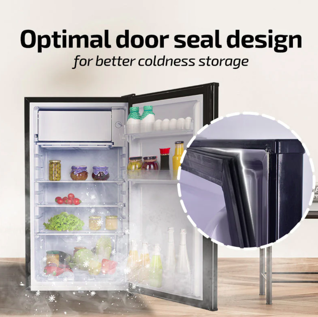 105L Bar Fridge with Lock, sizable, shelves, crisper, anti-bac Carbon Filter, optimal door seal, built-in Freezer, black, PPF105BK