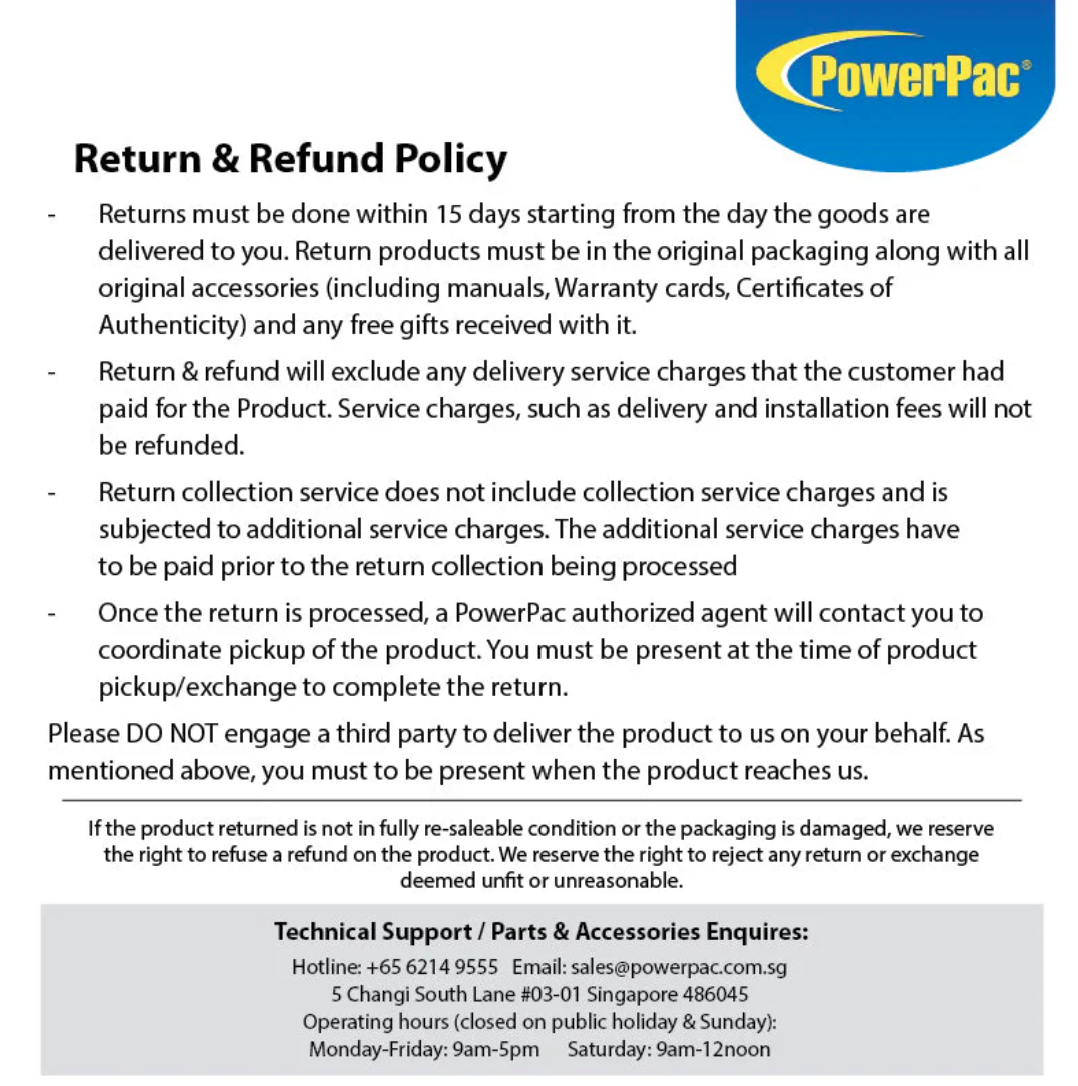 • 2-way collection and return upon repair at our service centre at a discounted rate of $50.00. This fee will be refunded if the new product require repairs within 180 days of being delivered to the customer. After the product is repaired and delivered, no further fee will be collected if the repaired product require further repairs within 90 days of being delivered to the customer.