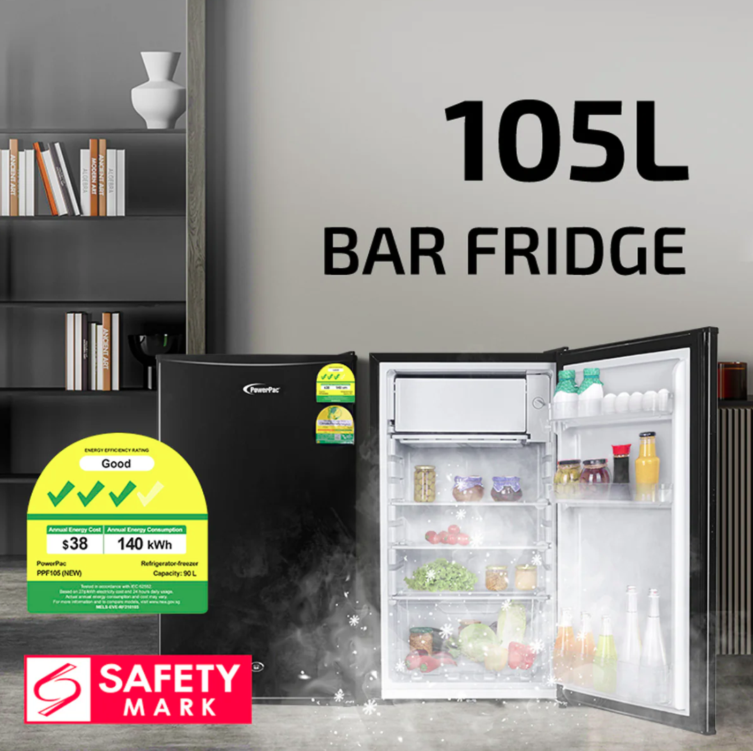The PowerPac Bar Fridge 105L with Lock PPF105 is versatile and of medium size, so you can place it in your study, living room, office, workshop and many other places. With the Super micro-hole foaming layer providing good insulation technology, the fridge has high energy efficiency and this saves on running cost.