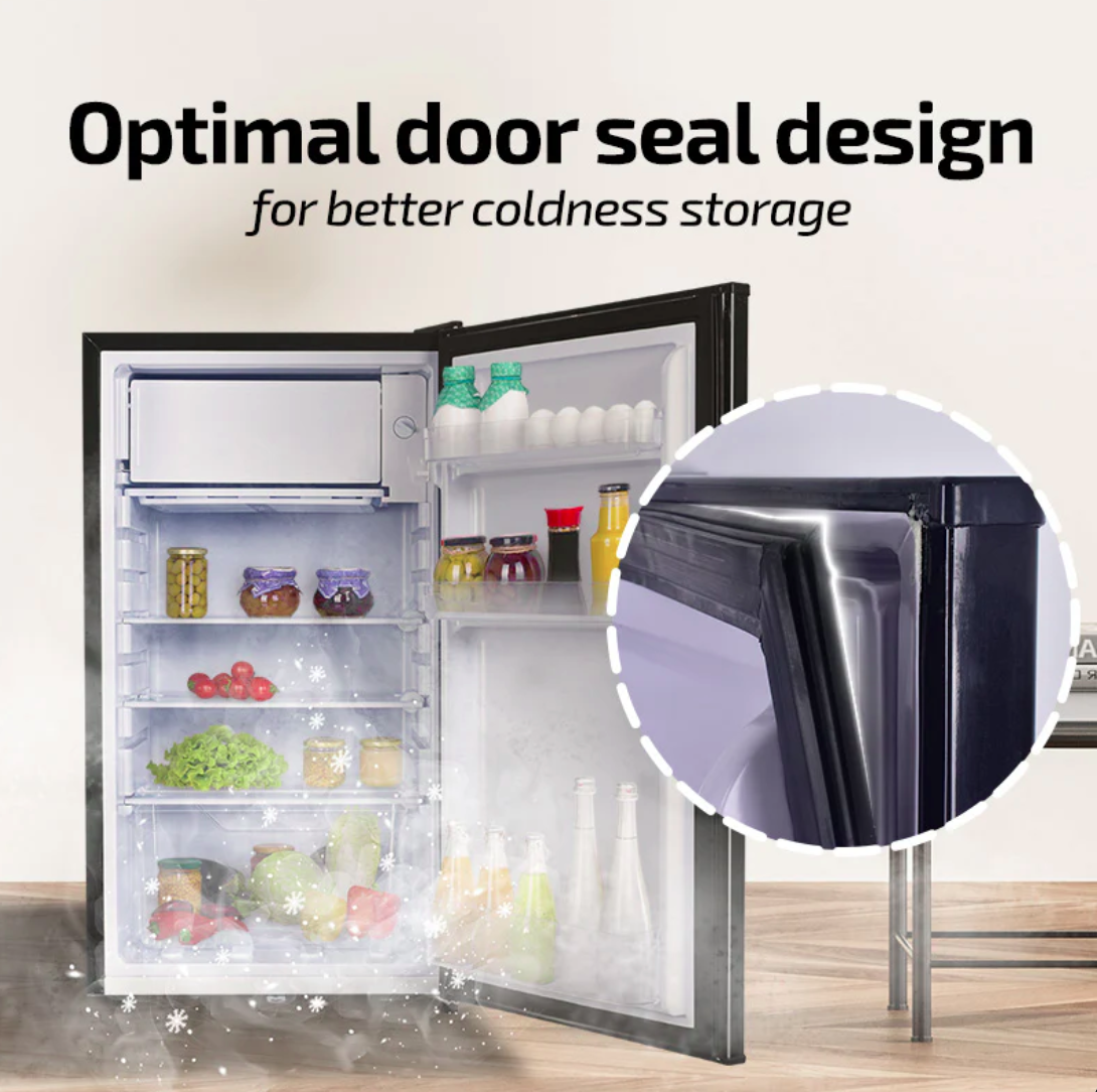 The bar fridge even contains a small Freezer so you can make ice cubes and even store a few tubs of ice-cream for those hot afternoons. It has a technologically-advanced Thermostat with 5 Temperature modes and maintains constant temperature, so food stays fresh longer. The Door seal tightly closes each time, sealing the items inside hygienically, keeping food fresher. Removable shelves are neatly arranged so you can fit a lot more items inside. Our Vegetables & Fruits Crisper is transparent and can be easily removed for cleaning.