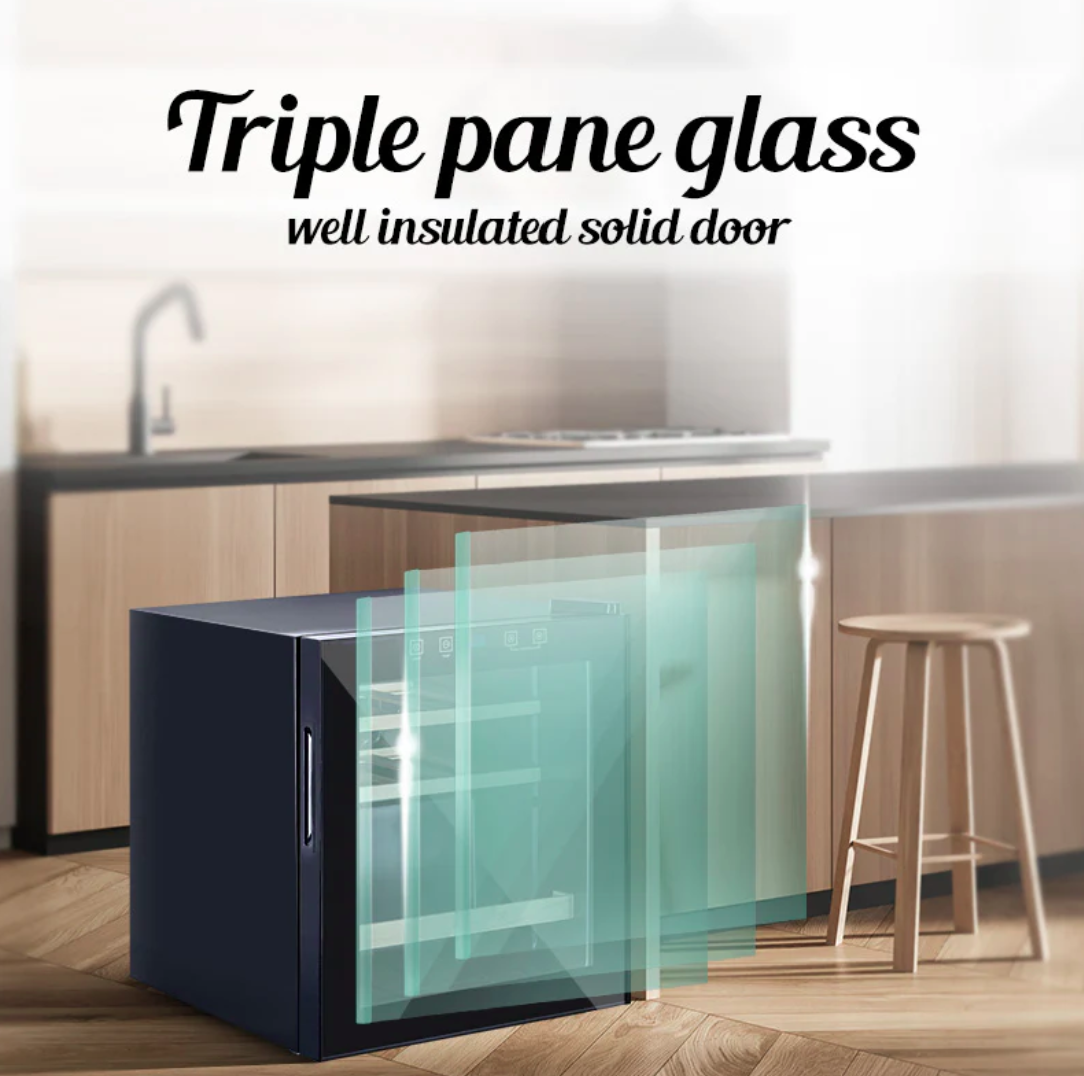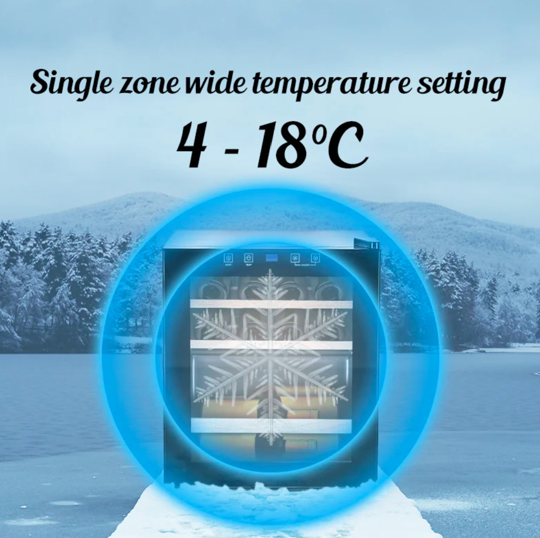 The technologically-advanced Thermostat maintains constant temperature in every compartment. Adjusting the temperature is simple and fuss-free. Just press one button on the Control Panel to increase the temperature by 1oC or 1oF, and another button to decrease the temperature by 1oC or 1oF. Temperature range is between 4oC to 18oC. The 3-layered glass door keeps the temperature low and running costs down. A lamp can be turned on by pressing a button on the Control Panel, so you would not have to keep opening and closing the door to view your wines. However, in the event that you need to open the door, you will find that the door opens and closes smoothly and safely. Cleaning is also much easier, as there are built-in-drainage holes at the bottom of each interior compartment.