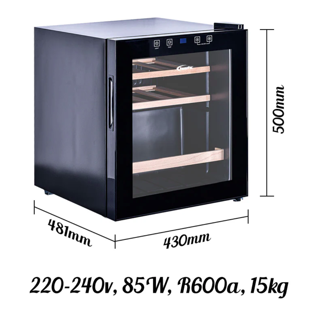 The PowerPac Wine Chiller PPF15 is ideally suited to store 15 bottles of 0.75 litre Bordeaux style wine bottles.