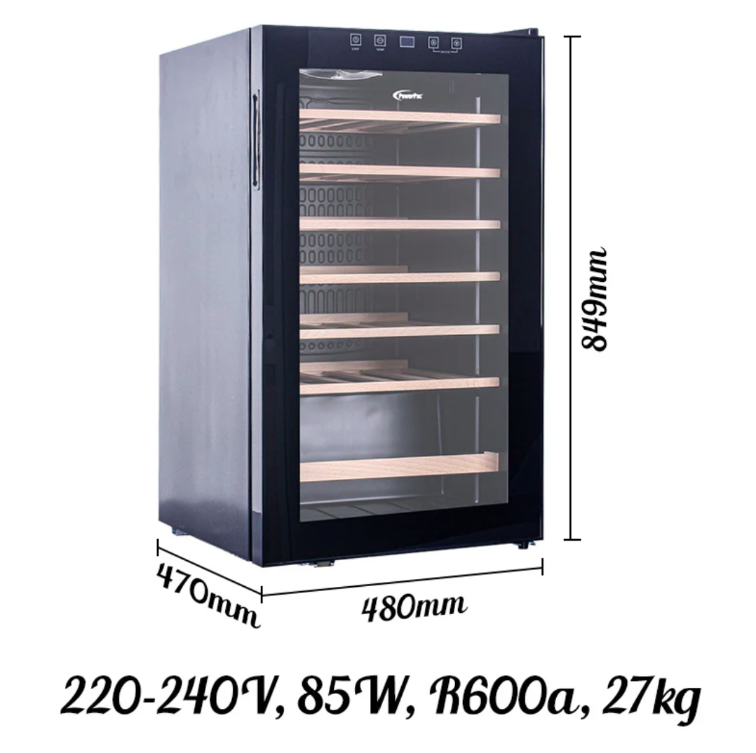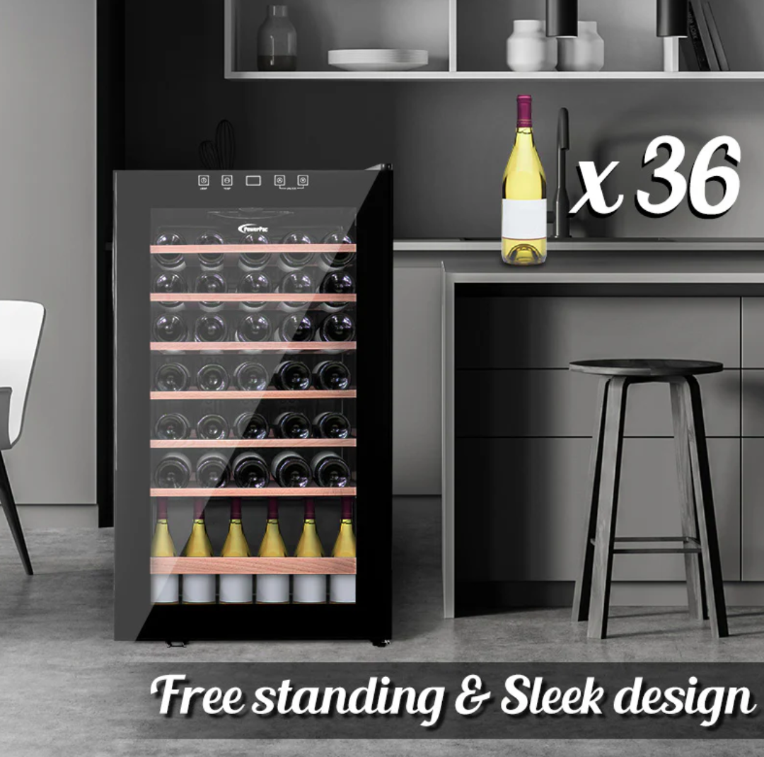 The PowerPac Wine Chiller PPF36 is ideally suited to store 36 bottles of 0.75 litre Bordeaux style wine bottles.
