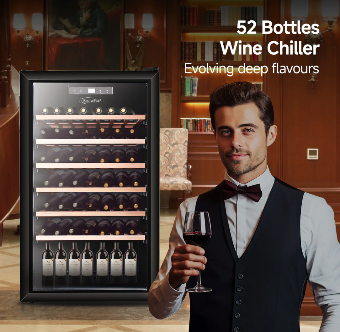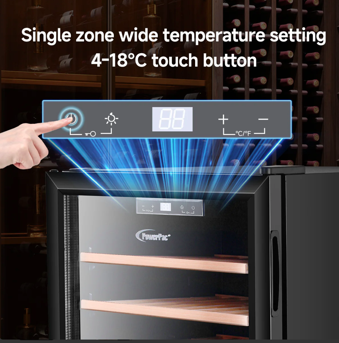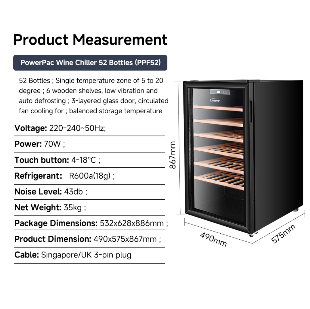 The PowerPac Wine Chiller PPF52 is ideally suited to store 52 bottles of 0.75 litre Bordeaux style wine bottles.