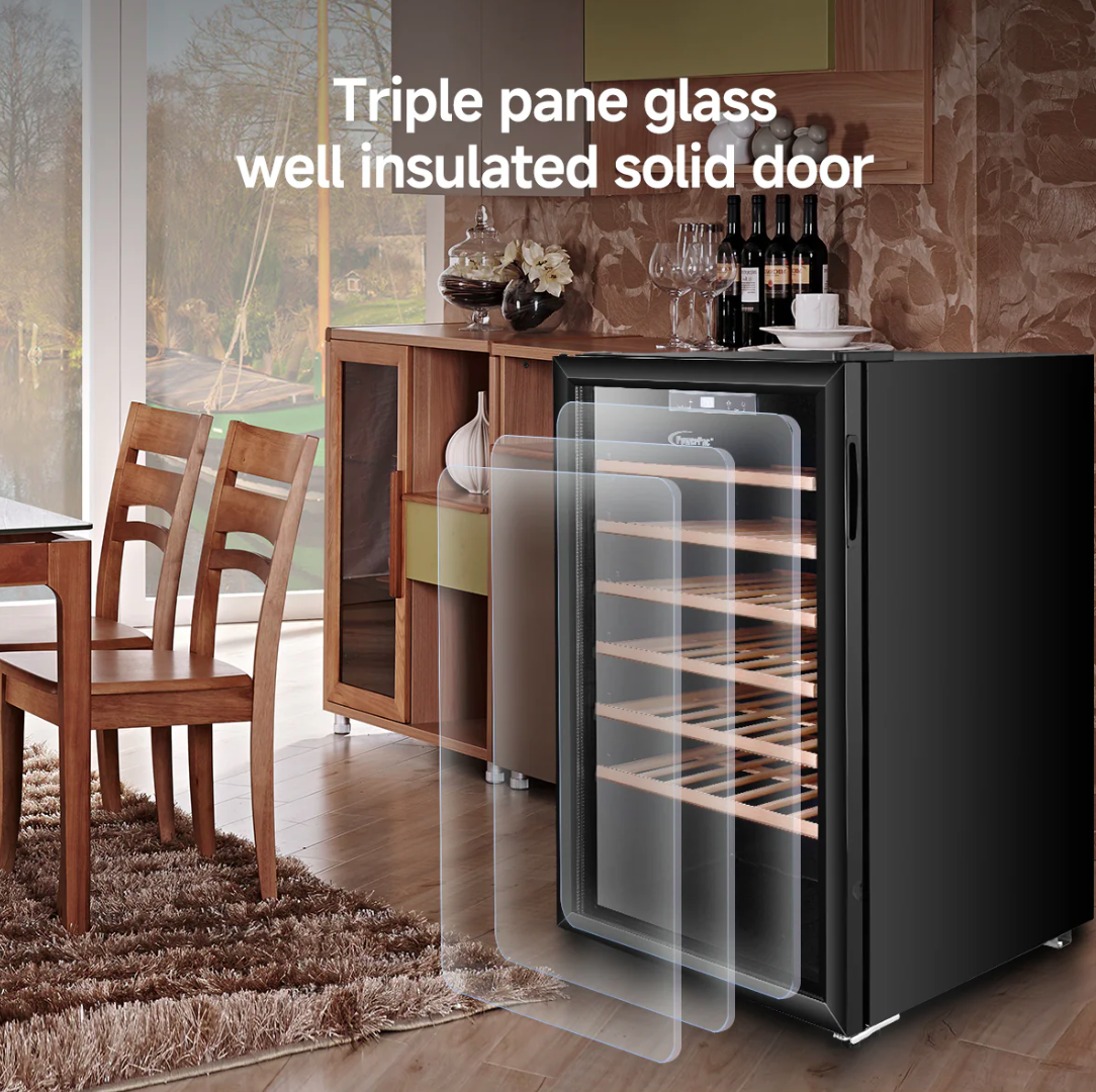The technologically-advanced Thermostat maintains constant temperature in every compartment. Adjusting the temperature is simple and fuss-free. Just press one button on the Control Panel to increase the temperature by 1oC or 1oF, and another button to decrease the temperature by 1oC or 1oF. Temperature range is between 5oC to 20oC. The 3-layered glass door keeps the temperature low and running costs down. A lamp can be turned on by pressing a button on the Control Panel, so you would not have to keep opening and closing the door to view your wines. However, in the event that you need to open the door, you will find that the door opens and closes smoothly and safely. Cleaning is also much easier, as there are built-in-drainage holes at the bottom of each interior compartment.
