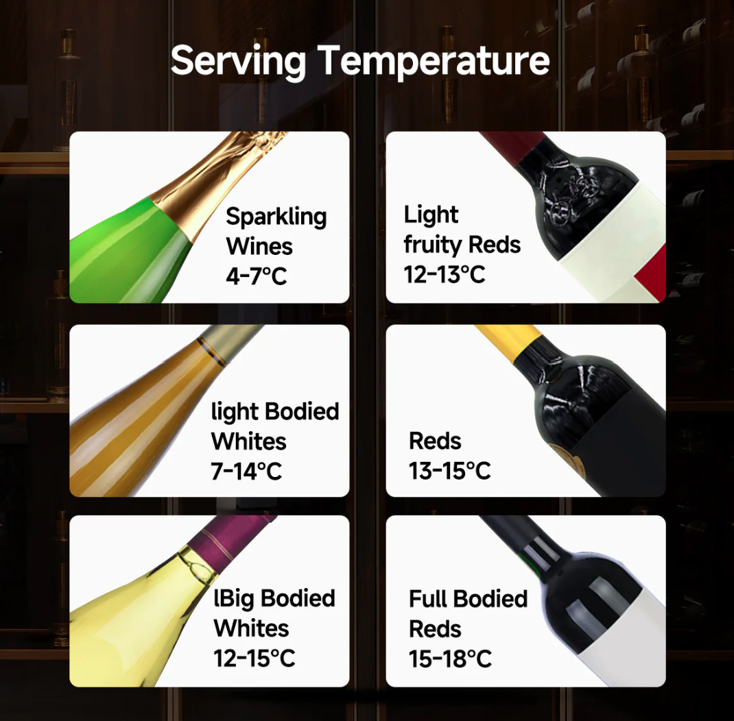When properly stored, wines not only maintain their quality but will actually improve in aroma, flavour and complexity. Wines kept at a higher temperature will age faster. Wines kept at too low a temperature in a home refrigerator results in harmful deposits. A humidity of 60%~70% is ideal for keeping corks from shrinking.