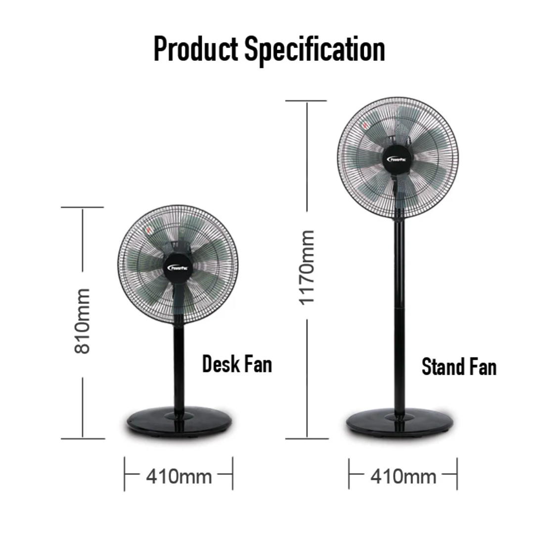 2-in-1 Convertible Design β Transform your home into a cooler, more comfortable space with the PowerPac 14" Stand Fan with Convertible Height PPFS212. Whether placed in the living room, bedroom, or study, this high-performance fan provides refreshing airflow with quiet, energy-efficient operation. Its convertible height function allows seamless transition from a stand fan to a desk fan, offering flexibility for different spaces.