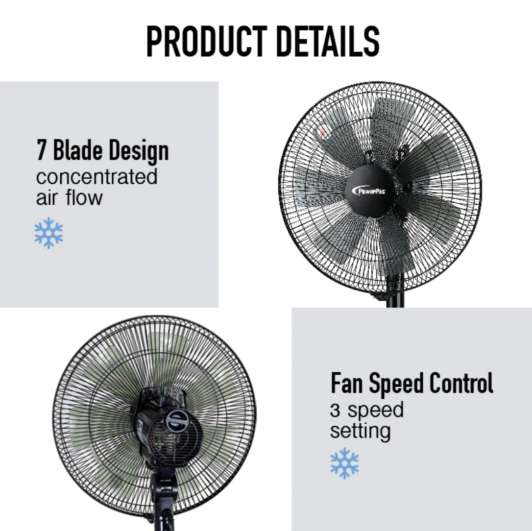 PowerPac 14" Stand Fan with Convertible Height PPFS212 β Stay Cool in Every Space