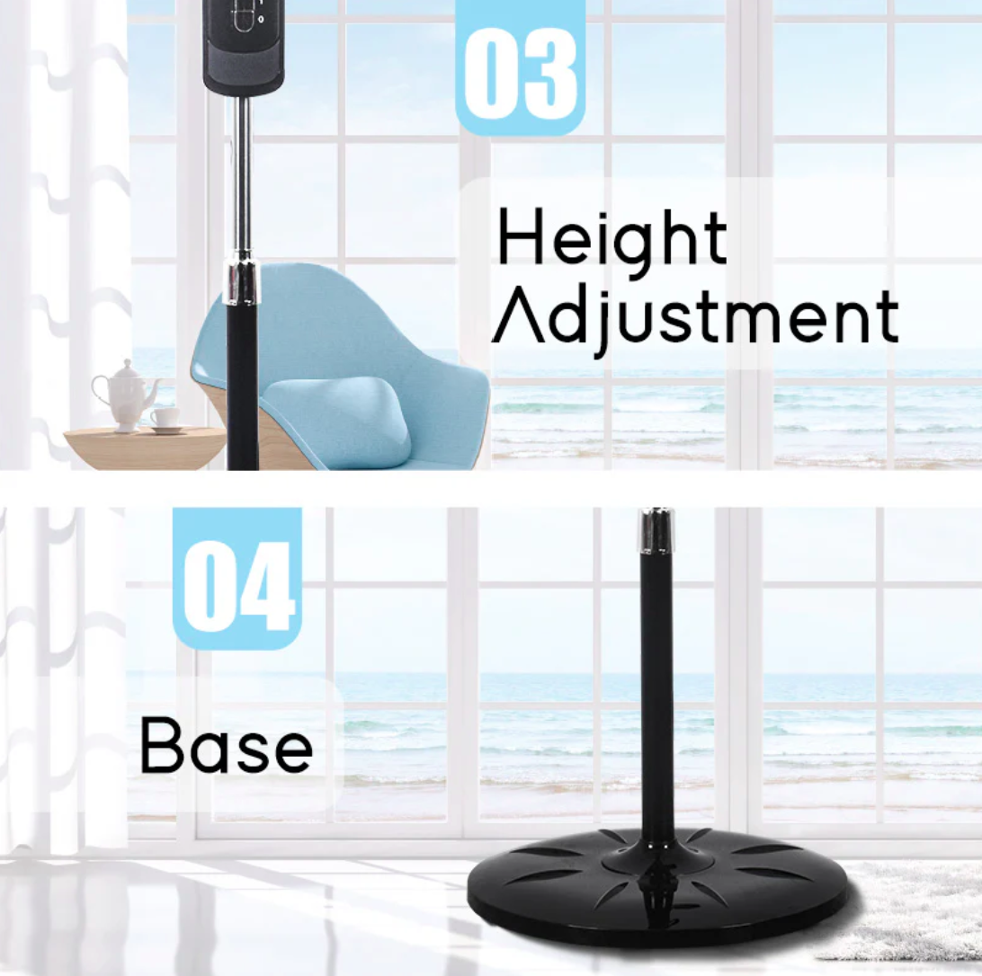 Customizable Comfort – Choose from 3-speed settings and adjustable height for personalized cooling.