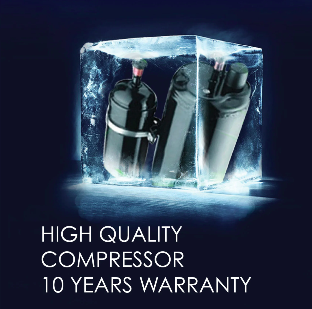 To ease your worries, all our refrigerators and freezers come with a 10-year warranty on the compressor.