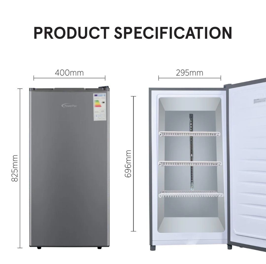 The PowerPac 60L Upright Chest Freezer PPFZ60, has a compact design and small size, so you can place it in your study, bedroom, living room, office, workshop and many other places.