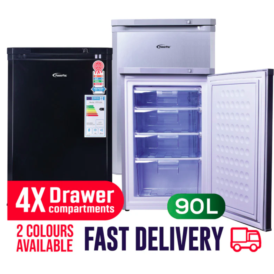 You will find yourself spoilt for choice with PowerPac's range of Freezers. If you prefer Upright Freezers that look and feel similar to refrigerators, have a look at our Upright, Freestanding Freezers - the 90L PPFZ99 with 4 drawers; and, the 160L PPFZ160, 175L PPFZ180 & 230L PPFZ230, each with 7 drawers.