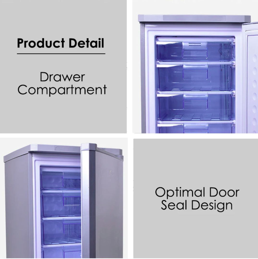 The 4 transparent drawers are deep and are able to contain a lot of food items, such as baby food or baby milk (breast milk) and also frozen food during festive season. The drawers easily slide out and are easy to clean. You will also discover that the door opens & closes smoothly & safely. The Door Seal locks tightly each time, sealing food hygienically.