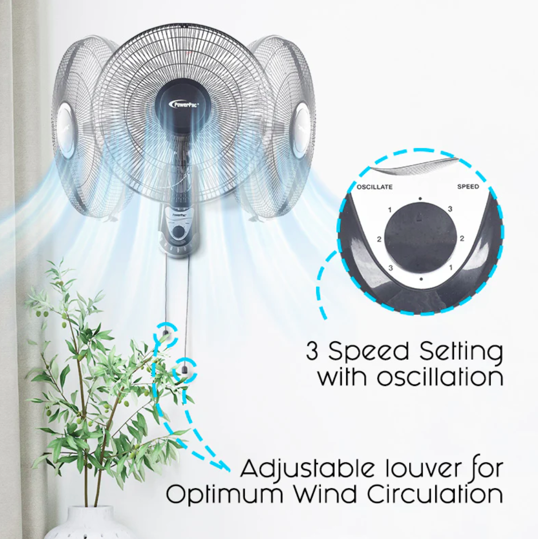 Upgrade to the PowerPac 16" Wall Fan with Oscillation PPWF40 today and experience powerful, refreshing air circulation in your home!