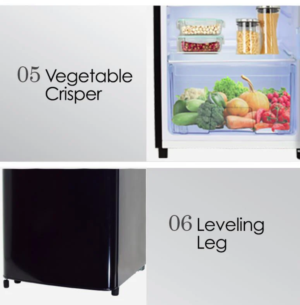 The Door Seal tightly closes each time and the activated carbon Filter eliminates bacteria and removes odour. Super micro-hole foam provides good insulation technology. The technologically-advanced Thermostat is easy to adjust and maintains constant temperature and the ideal 90% humidity so that cakes, fruits and vegetables do not lose their moisture. The powerful freezer freezes food very quickly, sealing nutrients and retaining flavours of food. With easy slide-out shelves and a deep transparent fruit & vegetable bin, you'll find that the Retro Fridge PPF118 is handy and easy to clean.