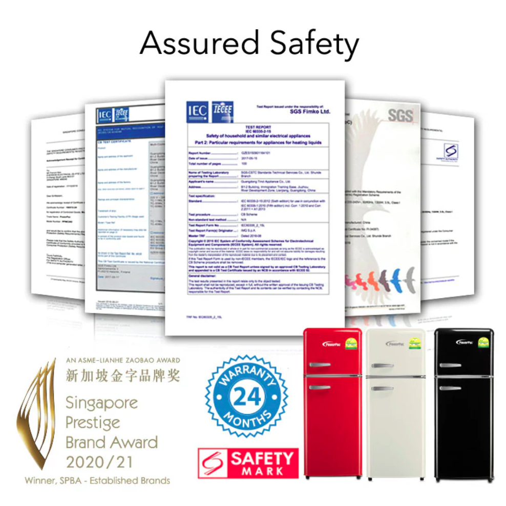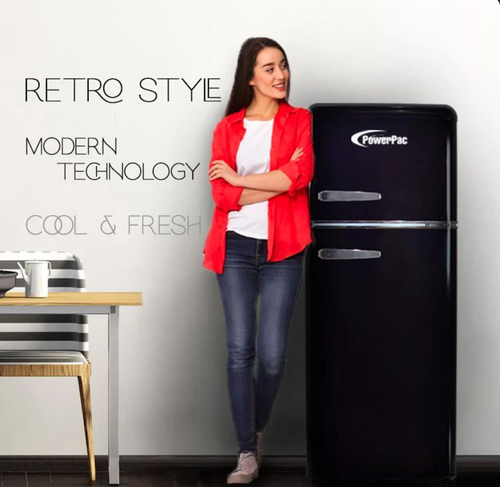 PowerPac's Retro style refrigerators PPF118 & PPF260 showcases the timeless elegance of 50s appliances. The 2-door fridges not only excel in performance and safety standards compared to those of yesteryears, but are designed to add visual appeal to your kitchen; for instance, the vintage-inspired rounded edges of the large handles are also safer to use. In Ivory White, Midnight Black or Scarlet Red, the fridge itself will serve as the centrepiece of your kitchen - a kitchen that's inviting, warm, and welcoming.