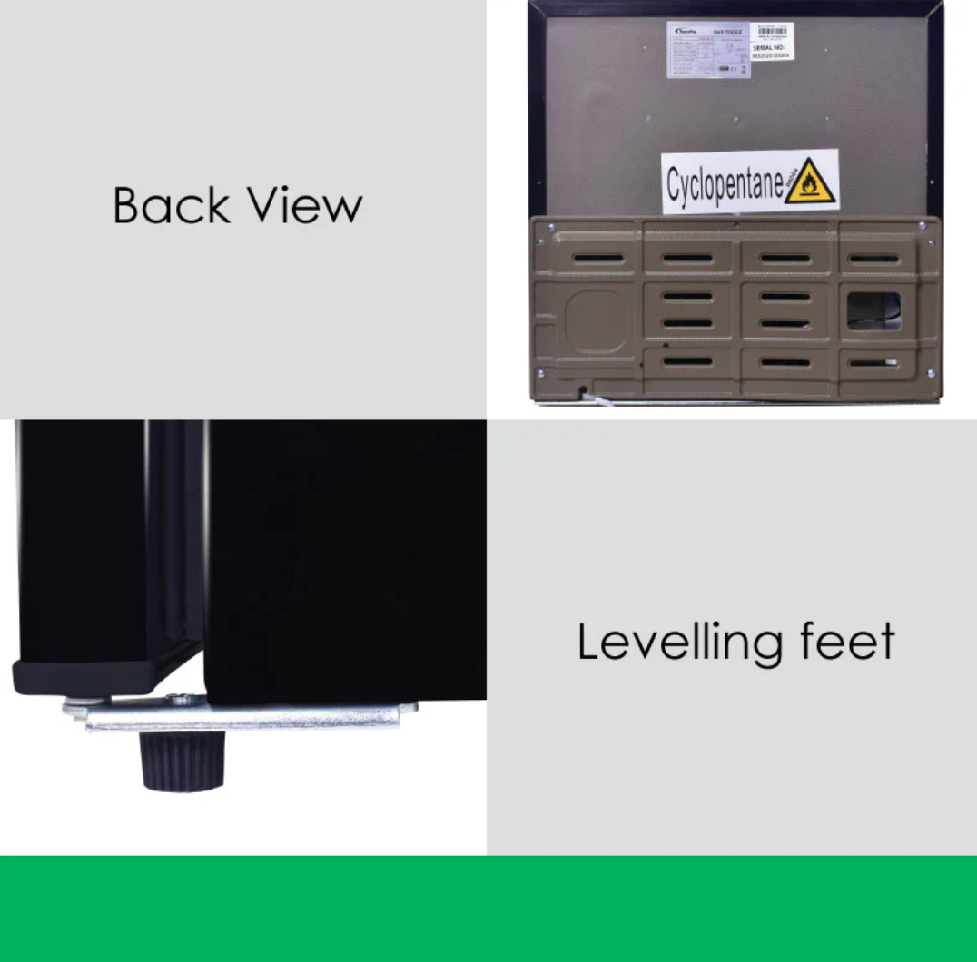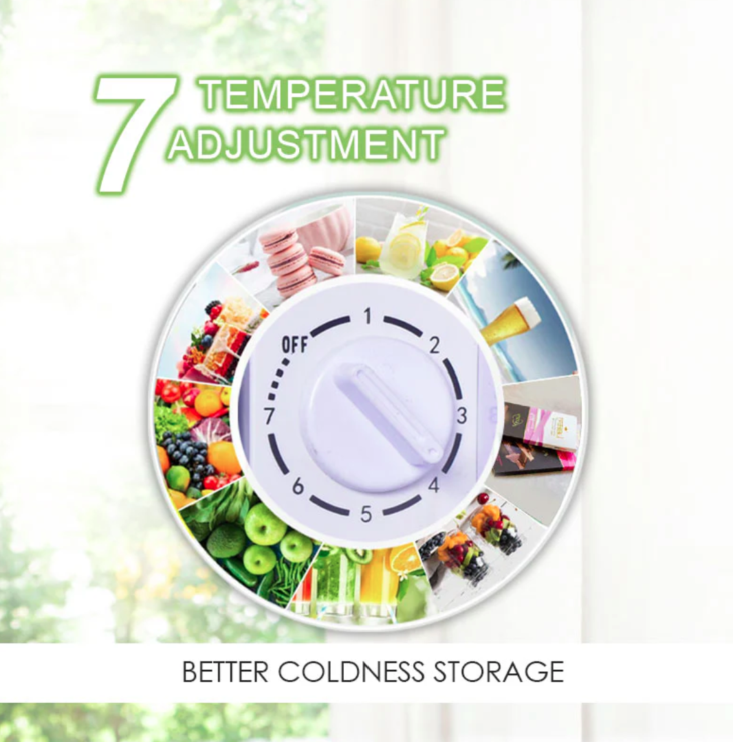 The bar fridge even contains a small Freezer. It has a technologically-advanced Thermostat with 7 Temperature modes and maintains constant temperature, so food stays fresh longer. The Door seal tightly closes each time, sealing the items inside hygienically, keeping food fresher. Removable shelves are neatly arranged so you can fit a lot more items inside. Our vegetables & fruits bin is transparent and can be easily removed for cleaning.