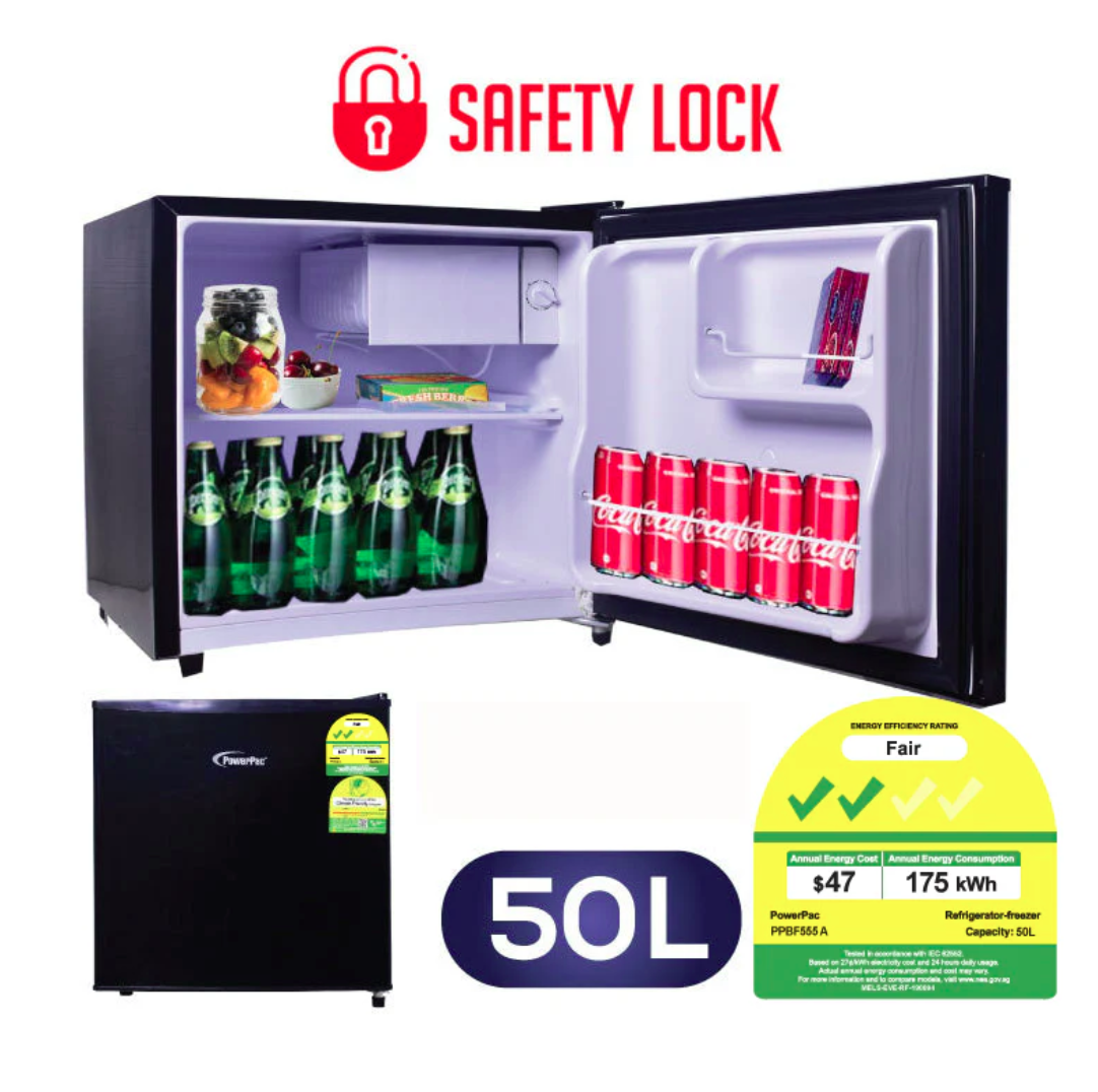 The Bar Fridge 50L PPBF555, which comes in silver or black, has a compact design and small size, so you can place it in your study, bedroom, living room, office, workshop and many other places. With the Super micro-hole foaming layer providing good insulation technology, the fridge has high energy efficiency and this saves on running cost.