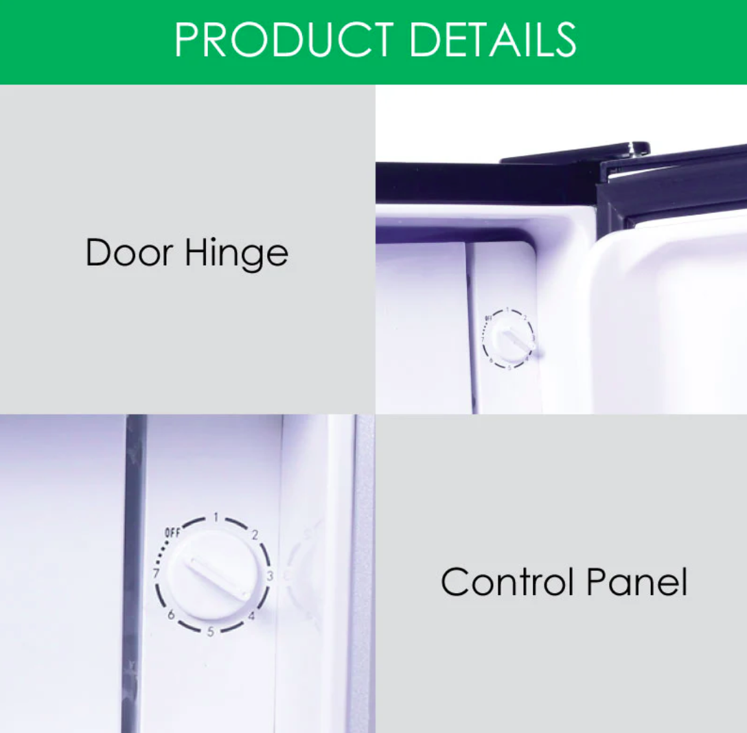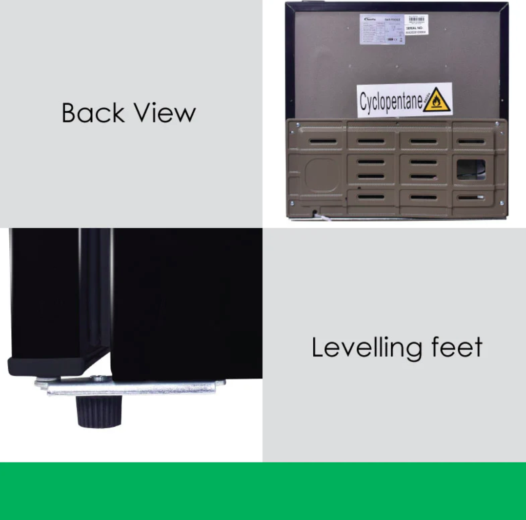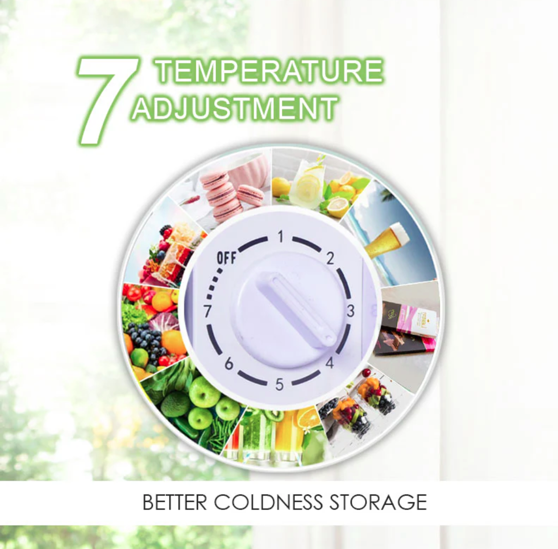 The bar fridge even contains a small Freezer. It has a technologically-advanced Thermostat with 7 Temperature modes and maintains constant temperature, so food stays fresh longer. The Door seal tightly closes each time, sealing the items inside hygienically, keeping food fresher. Removable shelves are neatly arranged so you can fit a lot more items inside. Our vegetables & fruits bin is transparent and can be easily removed for cleaning.