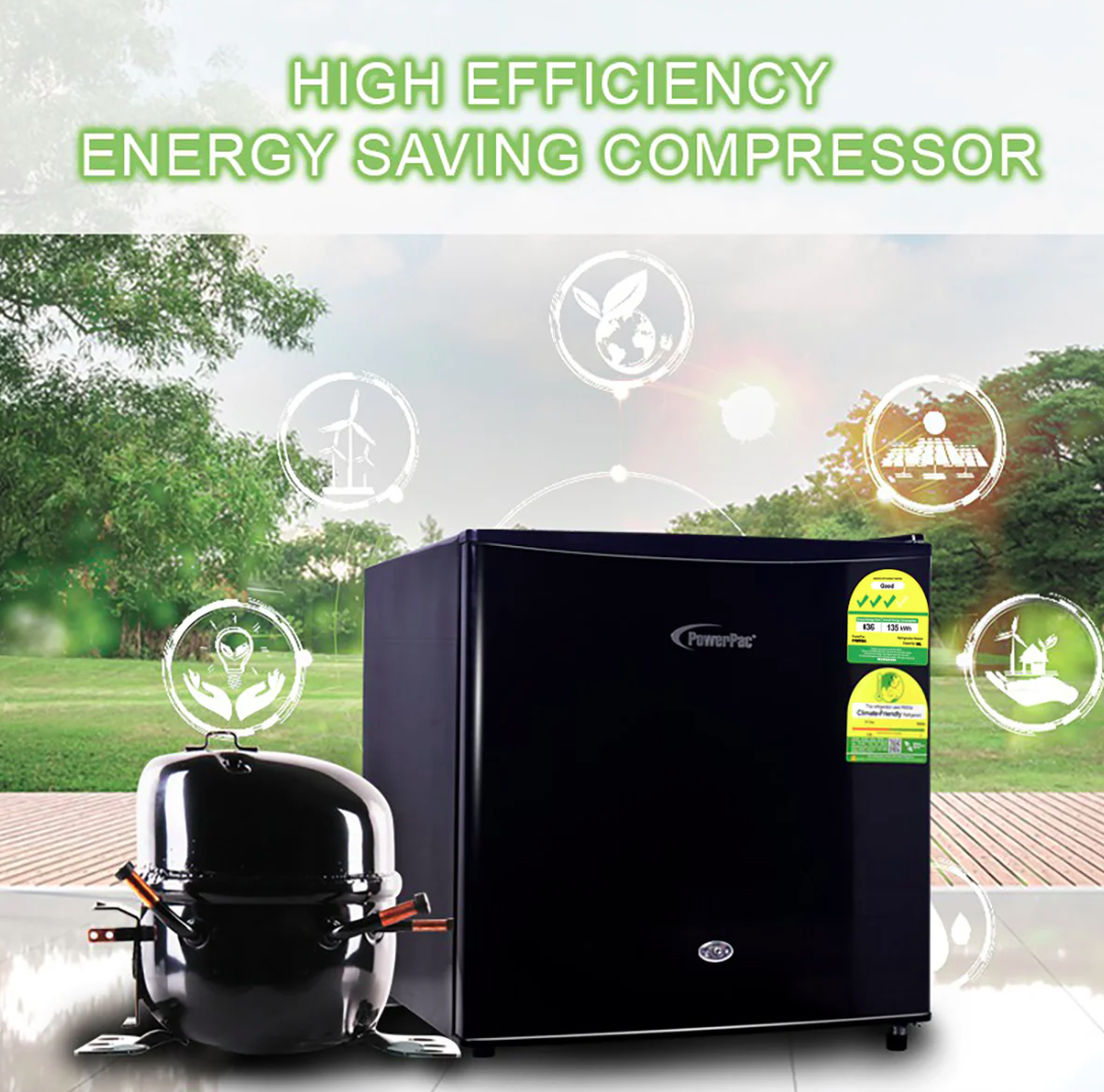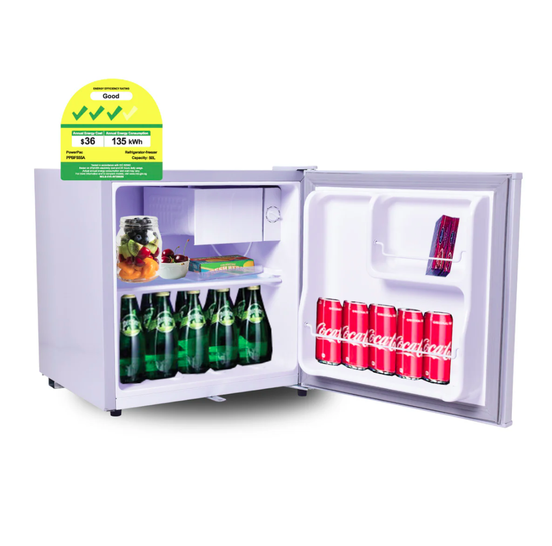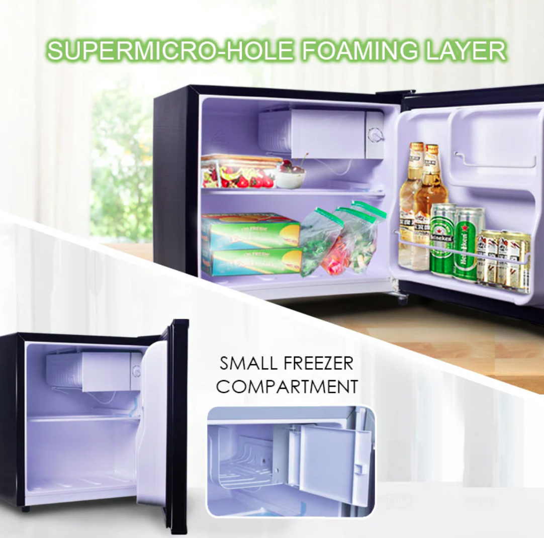 The Bar Fridge 50L PPBF555, which comes in silver or black, has a compact design and small size, so you can place it in your study, bedroom, living room, office, workshop and many other places. With the Super micro-hole foaming layer providing good insulation technology, the fridge has high energy efficiency and this saves on running cost.
