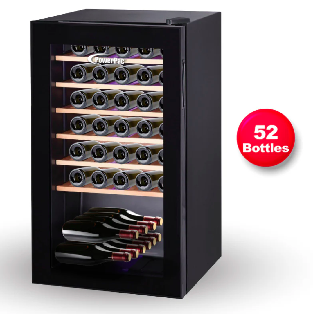 The PowerPac Wine Chiller PPF52 is ideally suited to store 52 bottles of 0.75 litre Bordeaux style wine bottles.